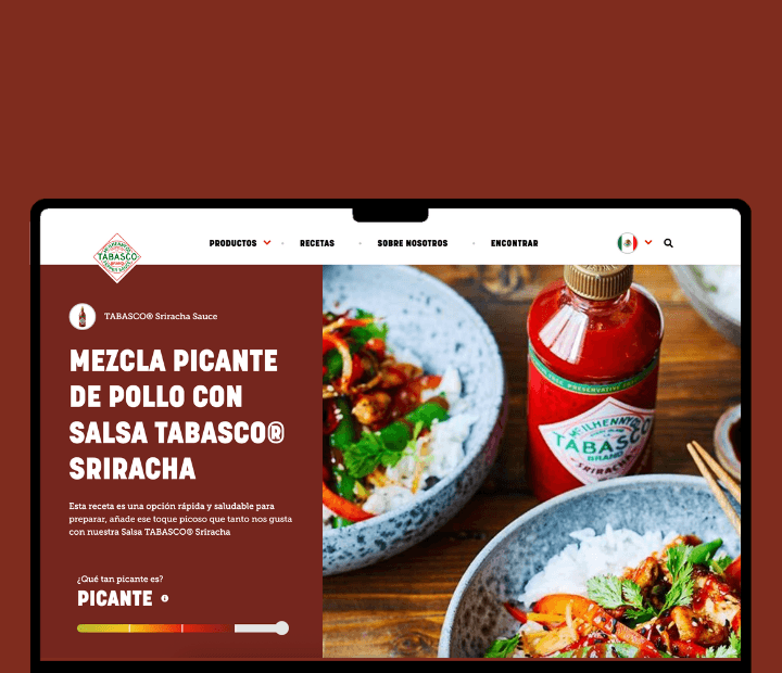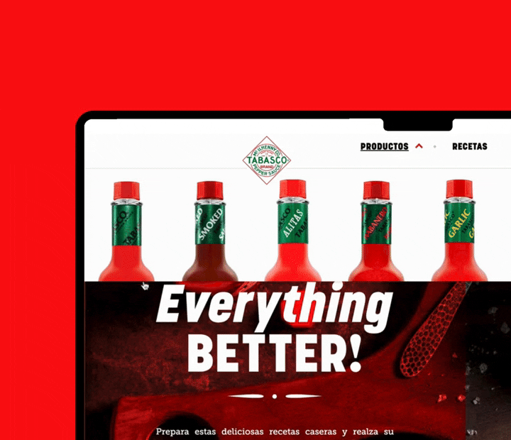 The main challenge was to translate a globally iconic brand into a culturally relevant experience for Mexican consumers, one that felt familiar and aspirational at the same time. Key objectives included: ✦ Presenting Salsa Tabasco’s full range of products in a way that was engaging, dynamic, and easy to explore. ✦ Designing a site that not only informed but also invited discovery, including a wide variety of recipes and interactive tools to find products near you. ✦ Ensuring the brand’s heritage and origin stories were visually and narratively compelling. ✦ Creating additional digital assets (photography and ads) for social platforms to strengthen local audience connection and drive brand love.